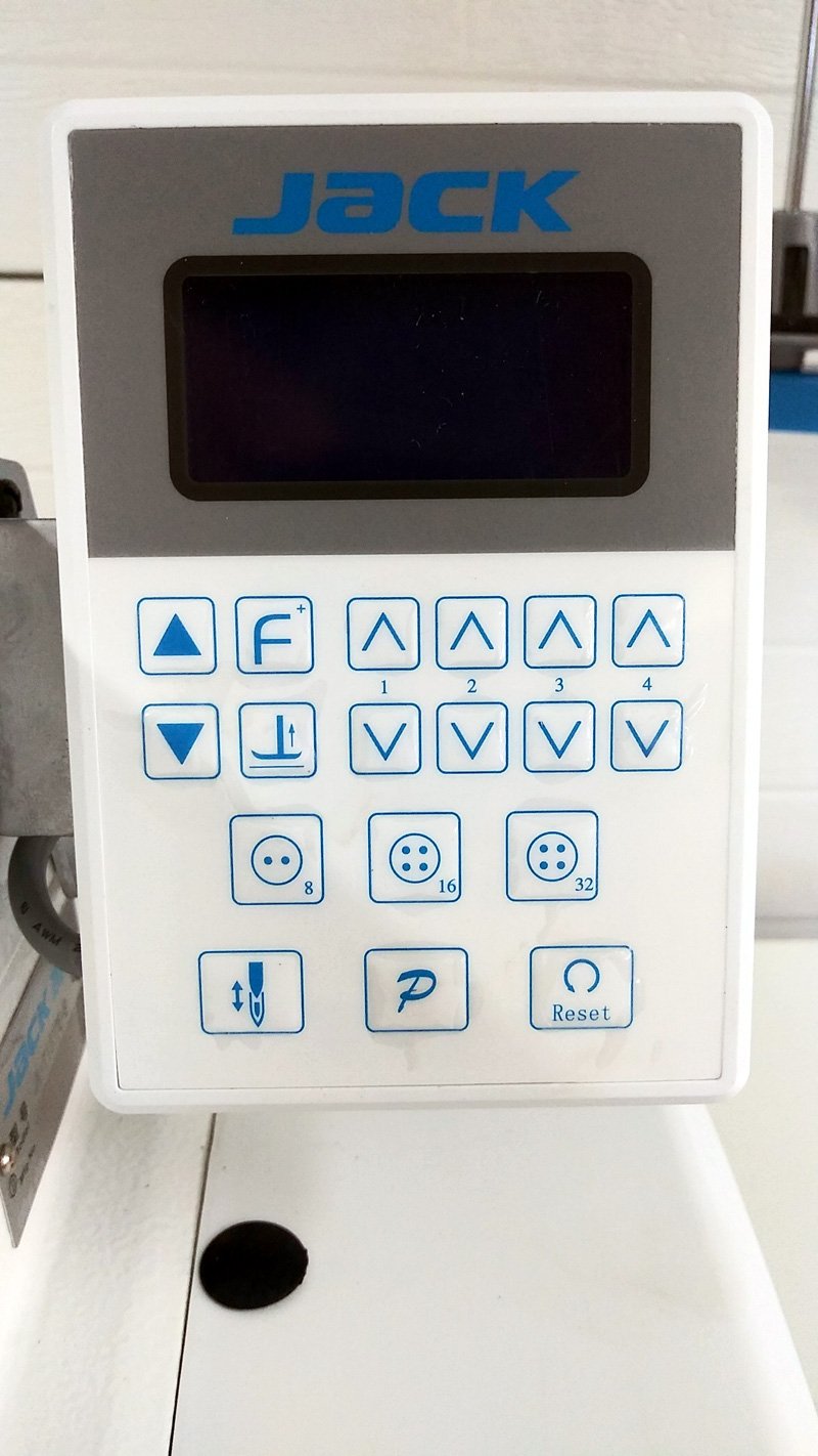 JACK JK-T1377E-B Chainstitch Button Sewing Machine with X Stitch, Direct Drive Motor and Control Panel