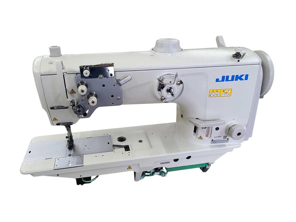 The Juki LU-2810A is a unison-feed, compound-feed, walking foot machine, lockstitch machine with a vertical-axis large hook which is provided with substantially improved functions and performance.