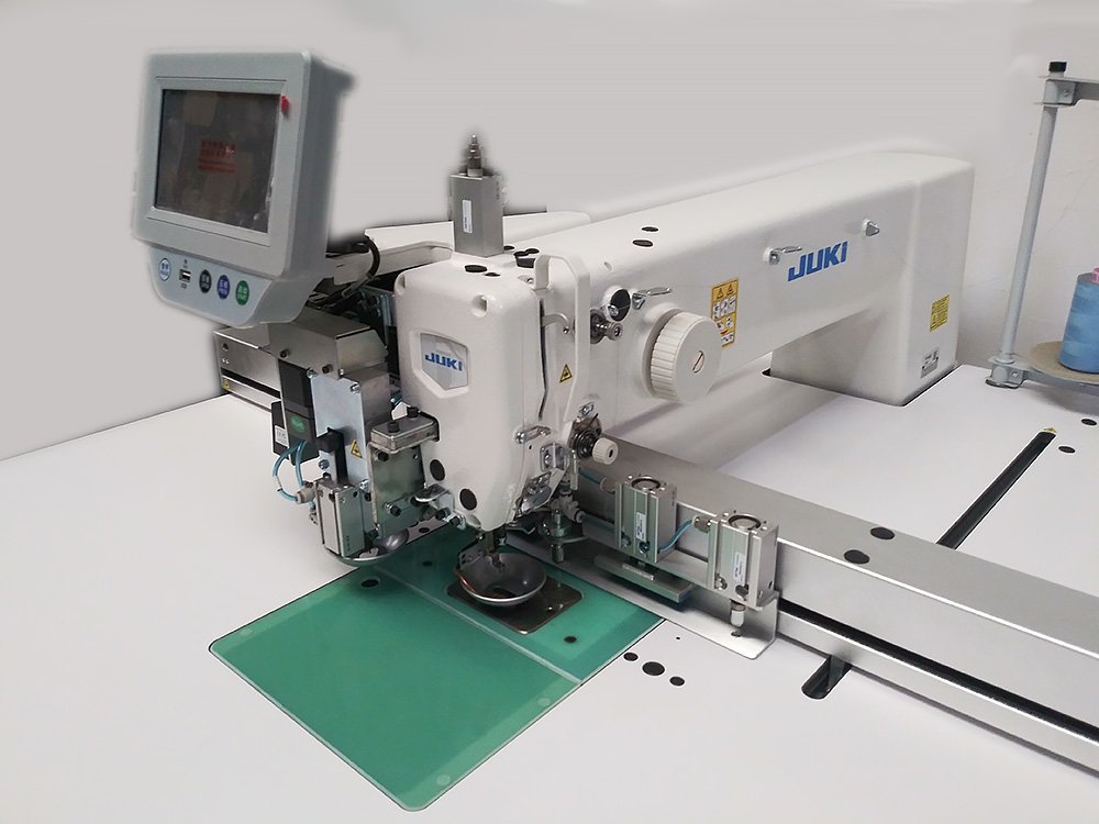 The JUKI PS-800-8045 is a fully loaded CNC programmable pattern sewing machine with an 800 mm x 450 mm sewing field. It features: