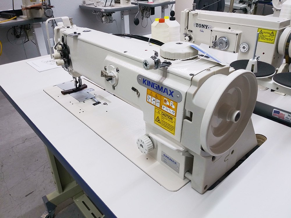 The new KINGMAX GC-1510L-18 is a single needle triple feed walking food sewing machine with an 18″ long arm, top load bobbin, air foot lift, reverse, adjustable stitch length ideal for automotive upholstery with room for sewing larger panels of medium to heavy weight materials.